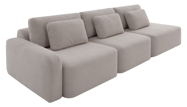 -Encosto com almofadas soltas preenchidas com fibra siliconada e almofadas para lombar.